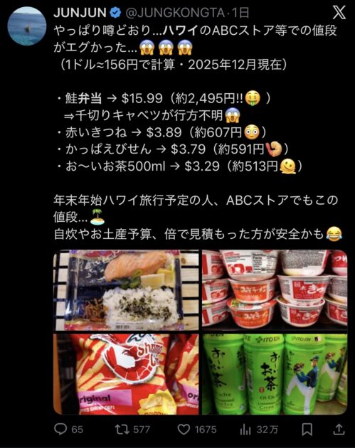 引用元: ・ハワイ、スーパーで390円で売ってそうな不味そうな弁当が2495円もして貧困日本人卒倒 [271912485]