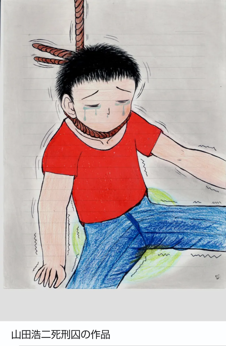 ◼山田死刑囚、首に縄をかけられ泣くシーンの絵も