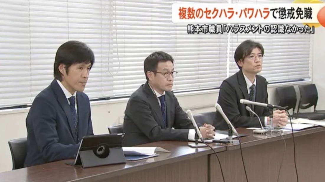 これらのセクハラ4件、パワハラ4件に加え、一連の行為に関する熊本市の聞き取りに対し、虚偽の報告を繰り返したなどとして、熊本市は12月25日付で詫間主査を懲戒免職処分とした。