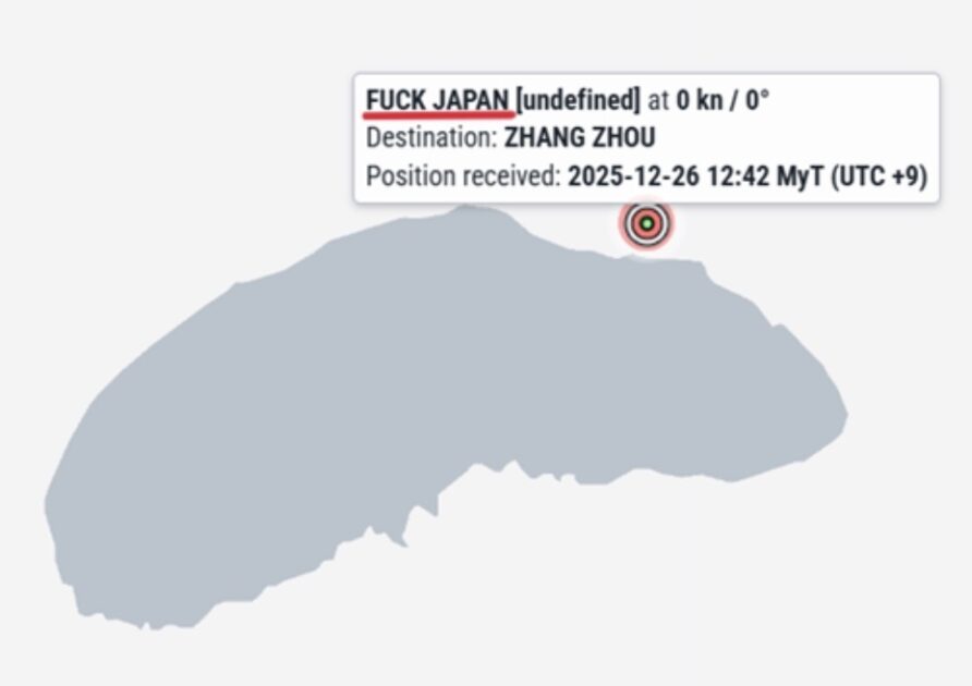 12月に入り尖閣諸島・魚釣島の日本の領海内に日本を侮辱する名前の船が表示されるようになりました。