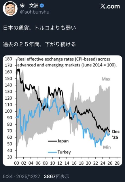 引用元: ・日本円、世界最弱と言われていたトルコリラより弱かったwwwwwwww 25年連続で価値低下中とのことw [271912485]