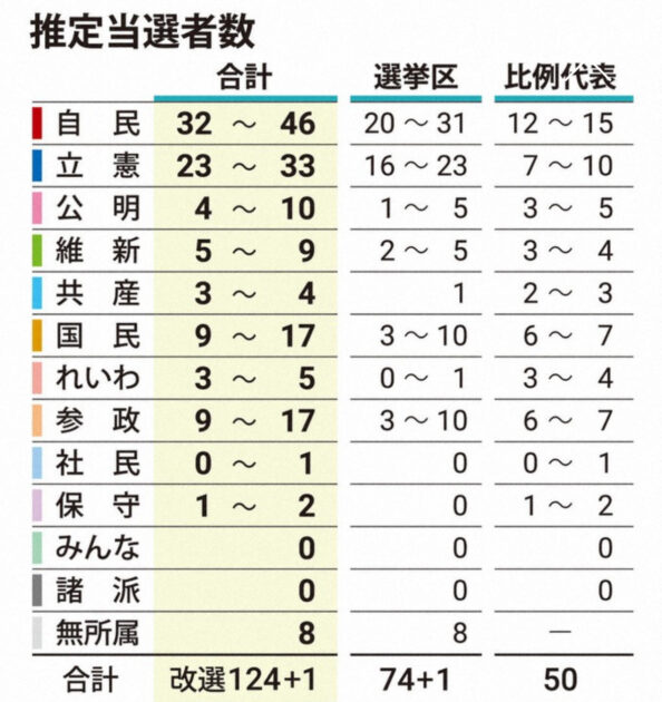 【毎日参院選序盤調査】自公苦戦、過半数の攻防 国民、参政に勢い