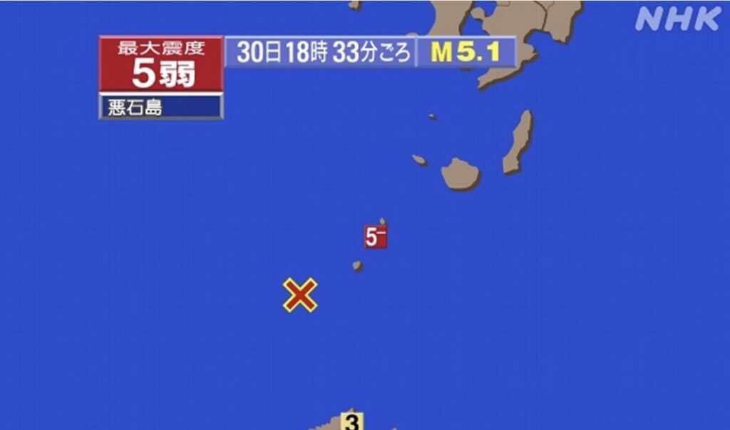 【地震情報】■震度5弱■十島村