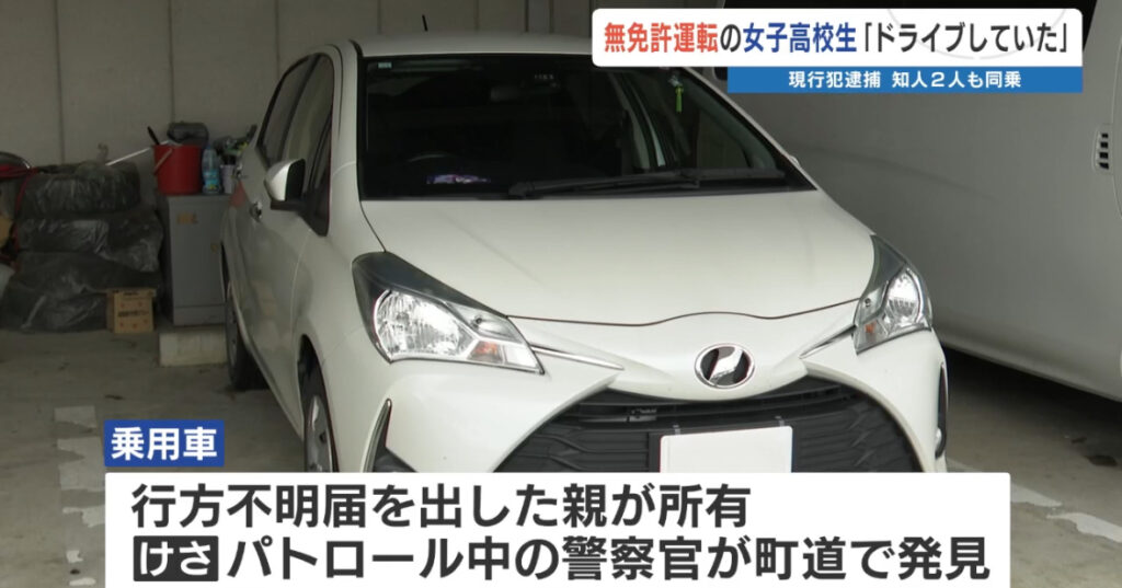 「車がない!我が子もいない!」 警察が探すと15歳の女子高校生の運転でドライブ中…無免許で現行犯逮捕