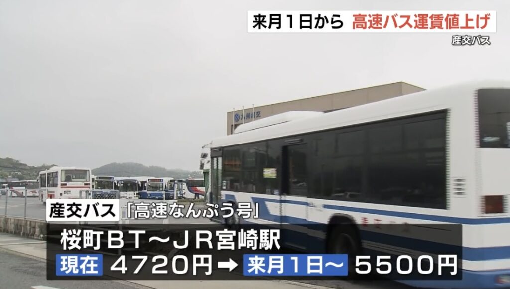 【値上げラッシュ】産交バスが熊本と宮崎、鹿児島を結ぶ高速バスを値上げ・・・熊本市と宮崎市を結ぶ「高速なんぷう号」 現在4720円の運賃が7月1日からは5500円になり780円値上げ