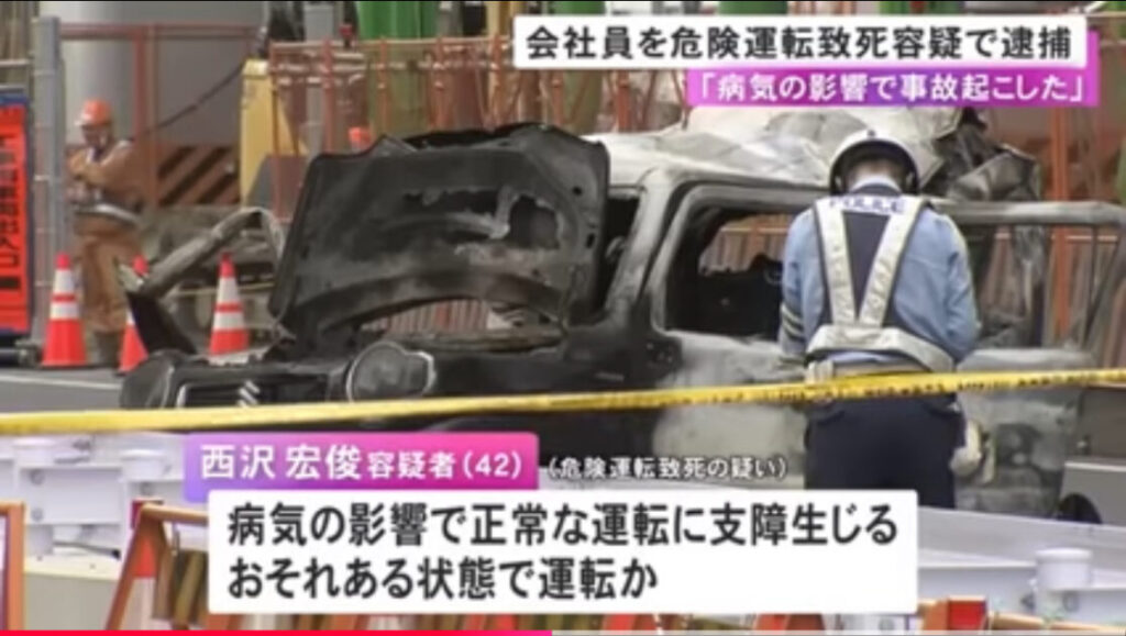 軽が追突され炎上し女性が死亡「病気の影響で事故を…」乗用車運転していた42歳男逮捕