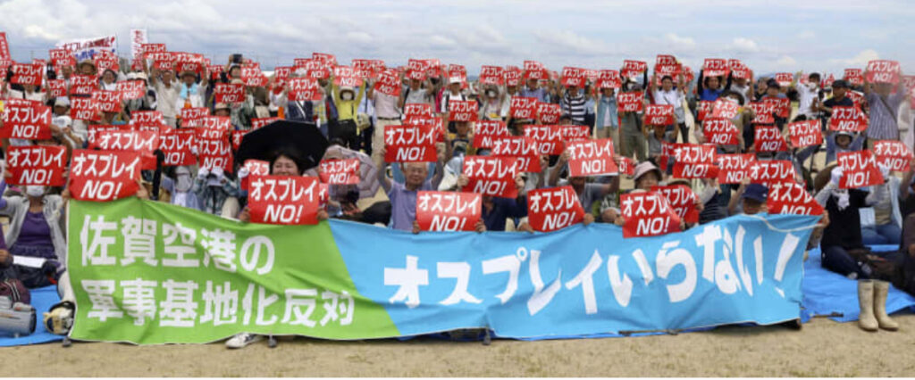 佐賀で「オスプレイ来るな」 7月に配備、抗議集会……約600人(主催者発表)が声を上げる