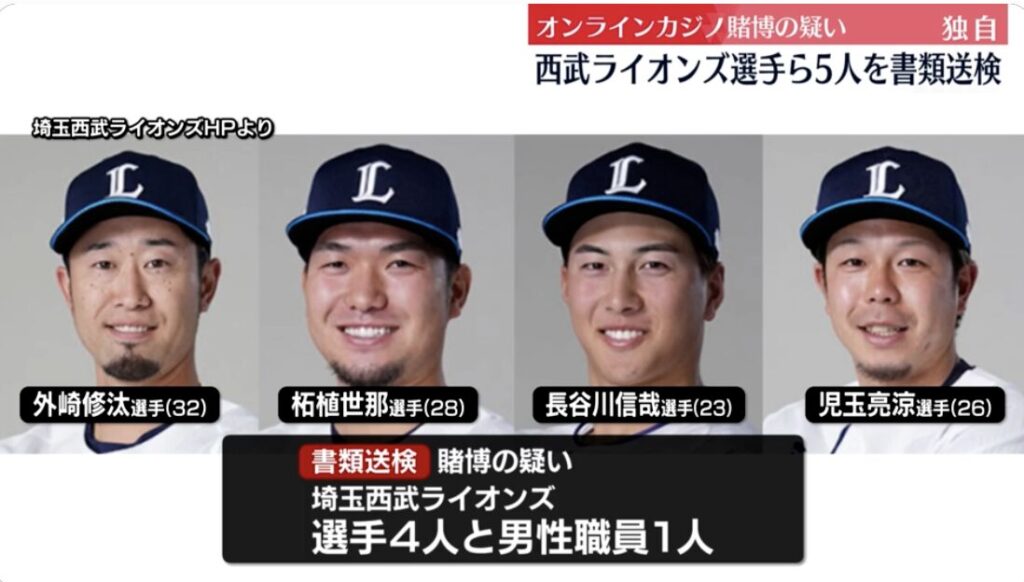 1: ネギうどん ★ 2025/06/19(木) 12:50:12.99 ID:xscy/xpb9 プロ野球をめぐるオンラインカジノの問題で、埼玉県警が埼玉西武ライオンズの選手ら5人を書類送検したことがわかりました。捜査関係者によりますと、埼玉県警が賭博の疑いで19日に書類送検したの... -