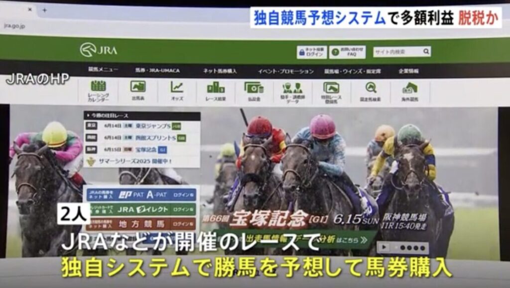 独自の競馬予想システムで払戻金が20億円を超えた月も 2億6200万円の脱税で男2人が刑事告発される 動画あり