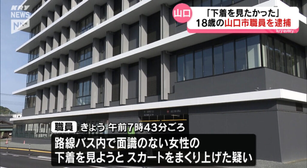 1: ソーセージータ(福島県) [US] 2025/06/05(木) 21:26:54.34 ID:Vkcuqyow0● BE:567637504-PLT(23994) sssp://img.5ch.net/ico/si2.gif 路線バス内で面識のない女性の下着を見ようとスカートをまくり上げたとして、県迷惑行為防止条例違反の疑いで山口市会... -