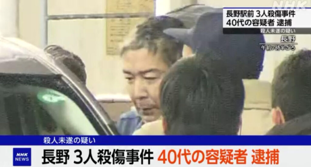 【NHKニュース速報】 長野駅前の3人殺傷事件 40代の容疑者を殺人未遂の疑いで逮捕(07:24)
