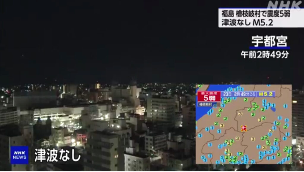 【地震】23日午前2時49分ごろ地震 福島県会津で震度5弱