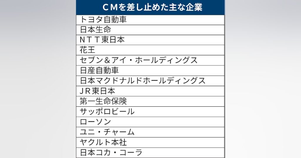 1: Ailuropoda melanoleuca ★ 2025/01/20(月) 13:26:55.69 ID:eNBG8p9j9 2025年1月20日 13:06 (2025年1月20日 13:22更新) フジテレビで放映しているCMを当面の間差し止める企業が相次いでいる。トヨタ自動車や日本生命保険、NTT東日本、花王、セブン&アイ... -