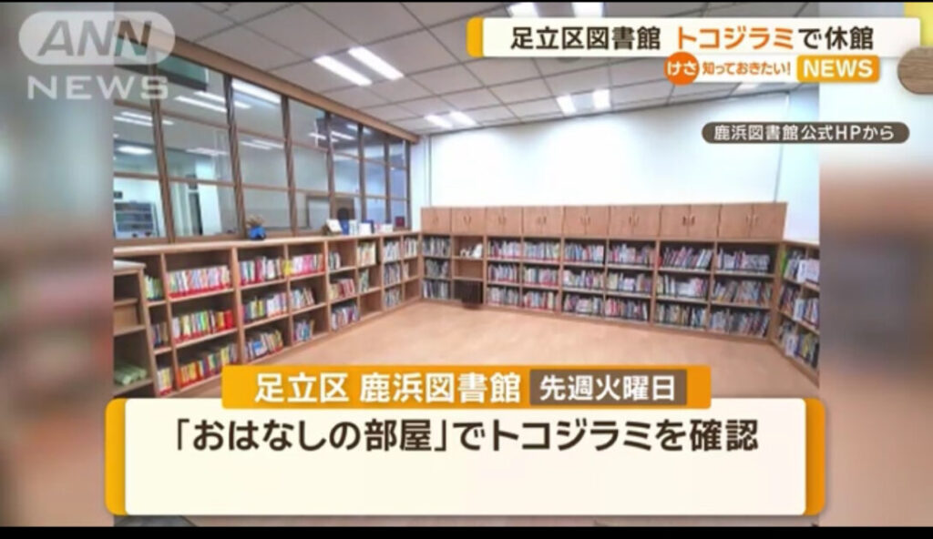 1: おっさん友の会 ★ 2025/01/20(月) 11:45:59.57 ID:BMfXP85Y9 14日、東京・足立区にある鹿浜図書館の絵本のコーナー「おはなしの部屋」でトコジラミが確認され、その部屋のみが封鎖されました。 さらに16日に図書館内の別の場所でもトコジラミのふんが... -