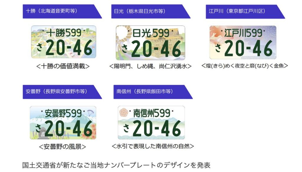 1: おっさん友の会 ★ 2025/01/18(土) 09:56:43.23 ID:05Mrr60K9 国土交通省は、新たな地域名表示による5地域のご当地ナンバープレート(地方版図柄入りナンバープレート)のデザインを発表した。事前申込は4月頃から受け付けけ、5月頃から交付を開始する予... -
