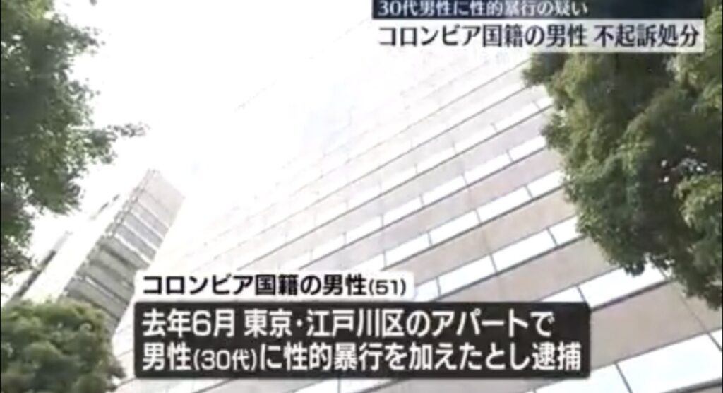 【東京地検】30代男性に性的暴行の疑い コロンビア国籍の男性を不起訴処分