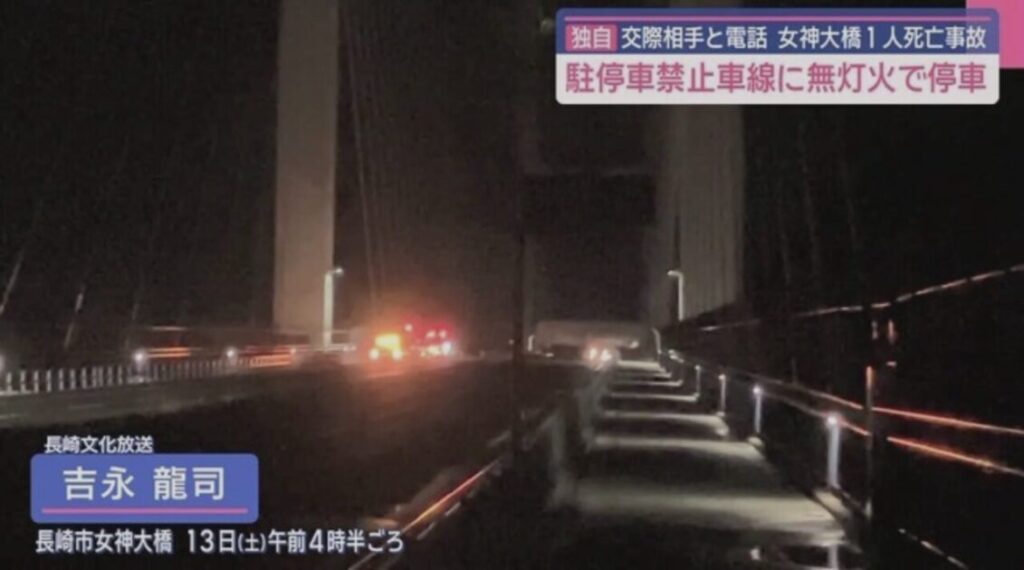 【長崎】女神大橋の大型トレーラー死亡事故 追突された乗用車は駐停車禁止車線にライト消し停車「交際相手と電話中」