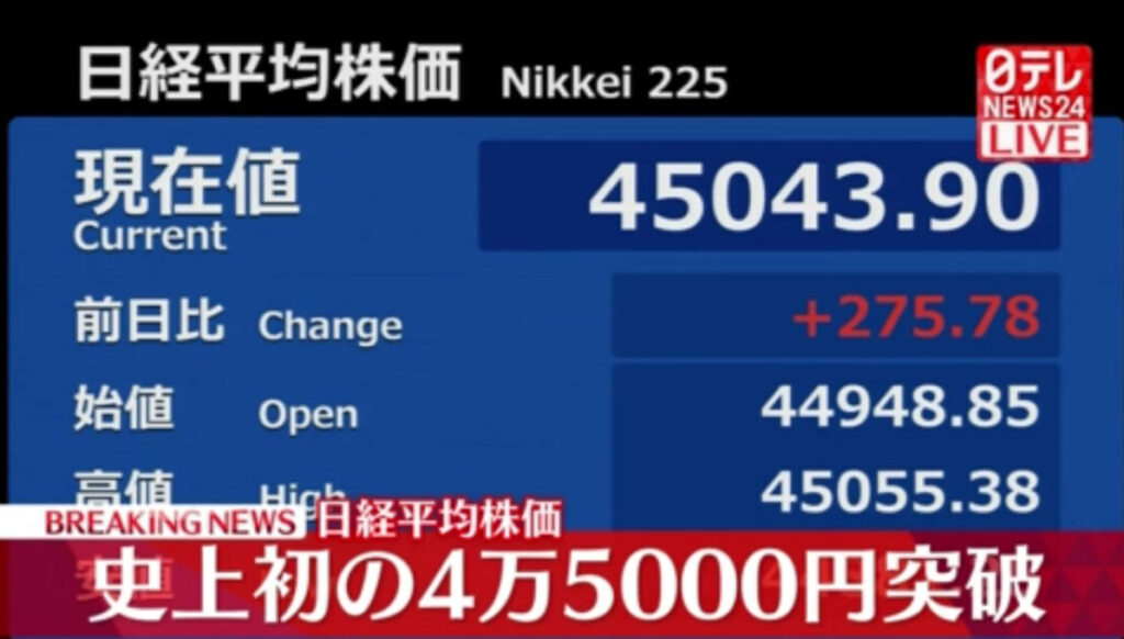 1: ぐれ ★ 2025/09/16(火) 09:17:08.00 ID:Id8pJNQ79 >>9/16(火) 9:11 日テレNEWS NNN 東京株式市場で 日経平均株価が一時4万5000円を超えました。 アメリカと中国の関税交渉の進展や、 アメリカのFRB=連邦準備制度理事会が、利下げに動くとみられ... -