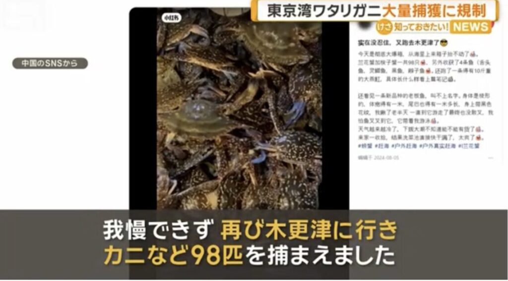 東京湾でワタリガニ大量捕獲の外国人が急増 中国SNSに「98匹」