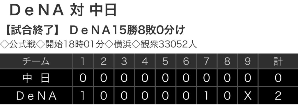 【野球】セ・リーグ DB 2-0 D [8/31] DeNA藤浪7回無失点NPB復帰後初勝利、宮﨑タイムリー 中日連勝ストップ