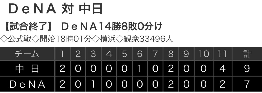 【筒香3発】セ・リーグ DB 7-9 D [8/30] 中日4連勝 延長11回ブライト健太走者一掃2塁打 DeNA連敗・佐々木千隼3四死球4失点