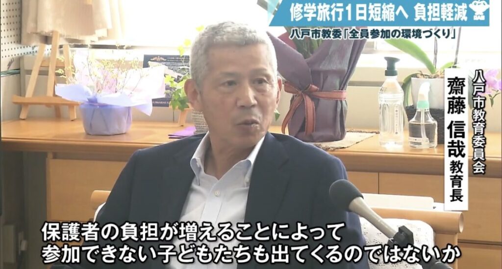 “旅費高騰”で小中学校の修学旅行を1日短縮へ「全員が参加できる環境作りを」八戸市
