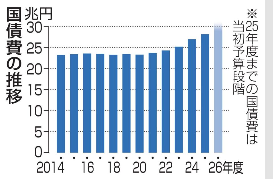 1: 蚤の市 ★ 2025/08/22(金) 13:30:20.35 ID:AKlk3UJB9 財務省が2026年度予算の概算要求で、国の借金である国債の償還費と利払い費を合わせた国債費として30兆円前後を計上する方向で調整していることが22日、分かった。長期金利が上昇傾向にあることを... -