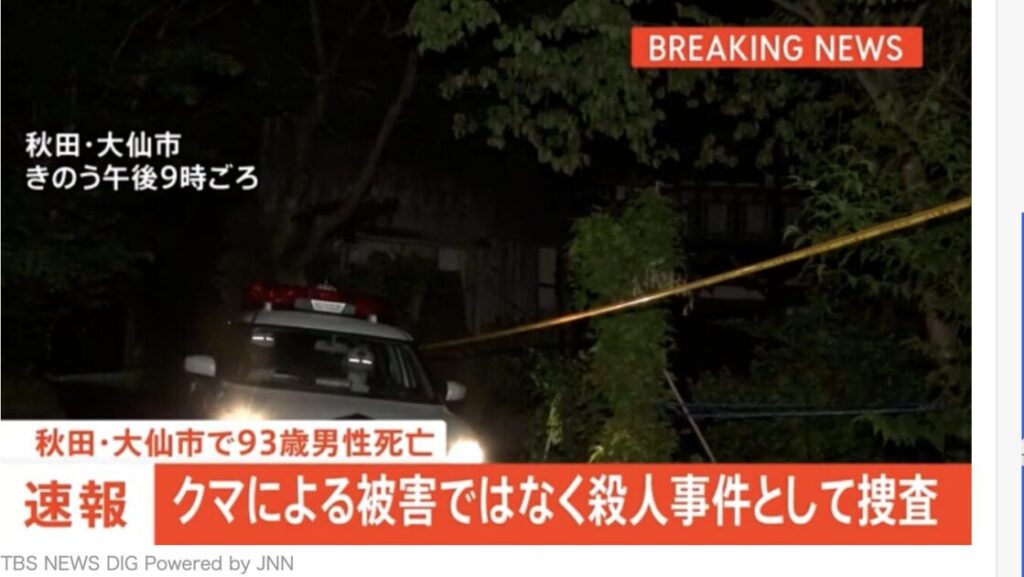 【´・(ェ)・`)ボクジャナイノニ…】秋田・大仙市で93歳の男性が死亡 司法解剖の結果、クマによる被害ではなく殺人事件として捜査