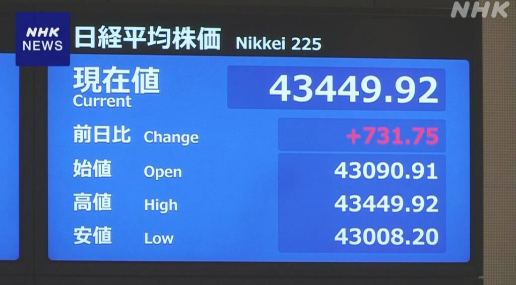 【日経平均株価】700円以上値上がり 取引時間中の史上最高値更新