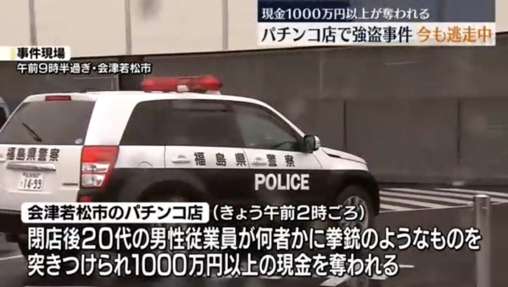 【福島】パチンコ店に強盗 1000万円以上奪って逃走 若い男とみられる
