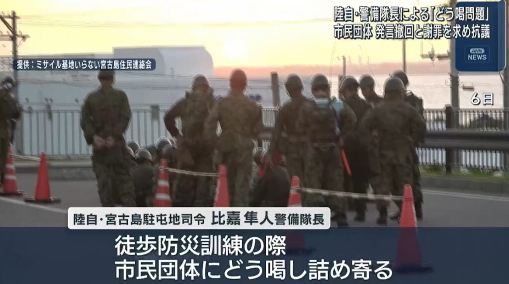 1: 少考さん ★ 2025/08/11(月) 14:14:26.24 ID:7BbdjyMs9 陸自・宮古島警備隊長が市民に恫喝した問題 市民団体が抗議/隊長に会えず 再度面会を申し入れ – QAB NEWS Headline:琉球朝日放送 https://www.qab.co.jp/news/20250811261868.html琉球朝日放送 ... -