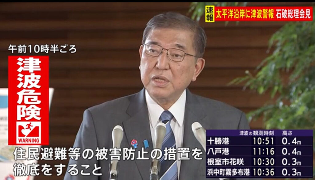 【地震】石破総理「人命第一の方針で被害防止に取り組む」 ロシア・カムチャッカ半島付近を震源とする地震うけ