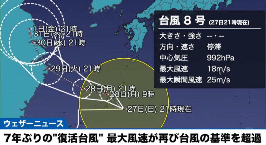 7年ぶりに台風8号が復活、再び9号とのダブルタイフーンに。