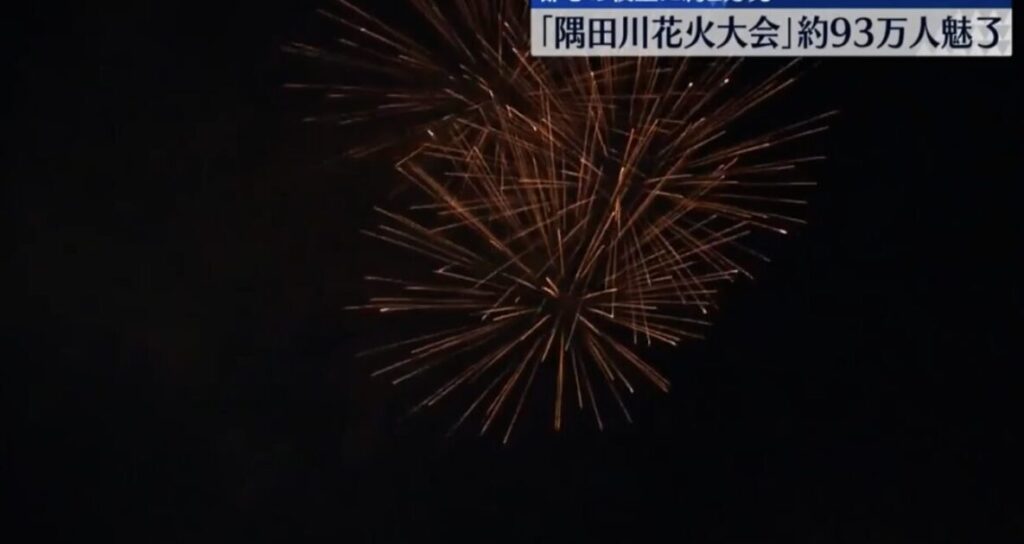 1: 七波羅探題 ★ 2025/07/27(日) 09:42:10.92 ID:uMuTTRPE9 NTV 2025年7月27日 0:46 https://news.ntv.co.jp/category/society/1b2216620ae74193b740a5c9e23bb5b226日夜、隅田川花火大会が開催され、午後7時から、およそ2万発の花火が東京の夏の夜空に輝き... -