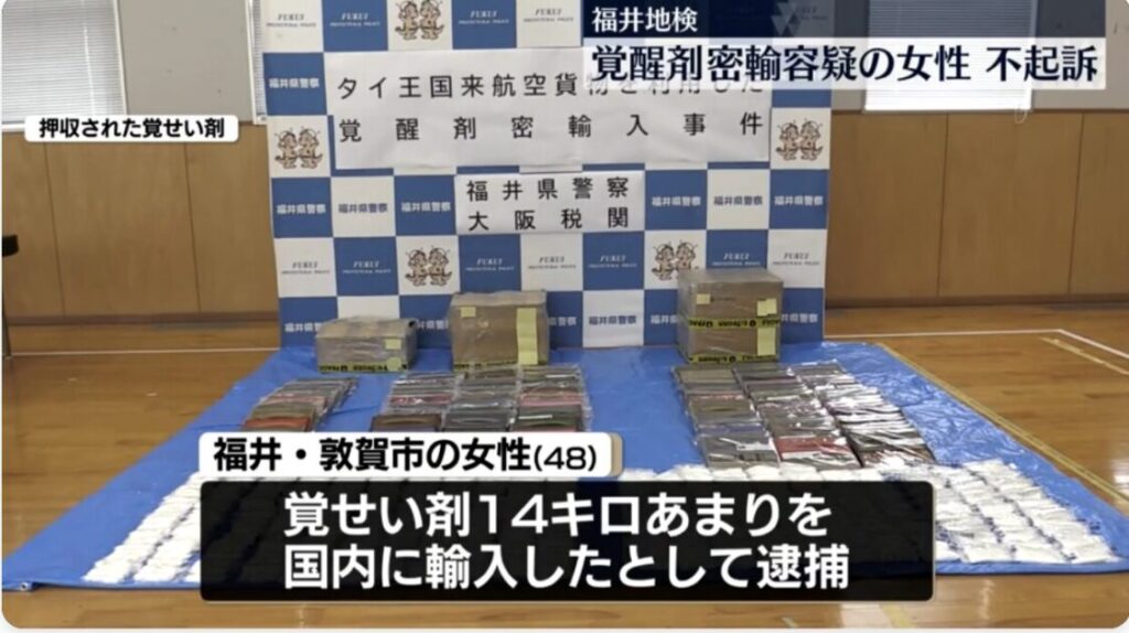 覚醒剤を約14キロ密輸したとして逮捕 女性を不起訴処分 福井