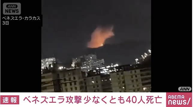 アメリカ軍によるベネズエラへの攻撃で、民間人を含む少なくとも40人が死亡したとニューヨーク・タイムズが報じました。 ニューヨーク・タイムズはベネズエラ政府高官の話として、3日未明のアメリカ軍によるベネズエラへの大規模な攻撃で、軍関係者や民間人を含む少なくとも40人が死亡したと伝えています。