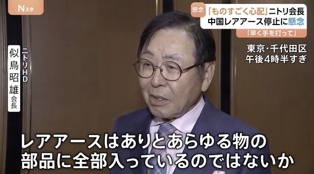【日中】ニトリ会長「レアアースはあらゆる部品に」 中国の輸出規制に日本の経済界からも懸念の声 政府には「早く手を打ってほしい」