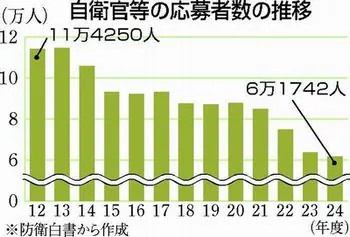 日本のほうがもっとヤバイ自衛官の応募がどんどん減ってる