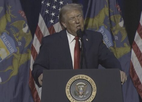 トランプ大統領は13日、ミシガン州デトロイトで演説し、イラン国民に対して各地で続く抗議デモを続けるよう呼びかけました。