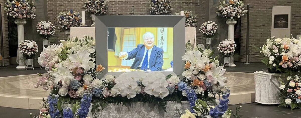遺影は将棋盤を前に満面の笑みを浮かべているもの。教会中央のイエス像前に棺が置かれ、白や水色、ピンクなど色とりどりの花で飾られた。棺の横には2024年に「同一雑誌におけるボードゲームパズル作者としての最長キャリア」でギネス世界記録に認定された時の認定証や勲章が並べられた。参列者は賛美歌や聖歌を歌い、加藤さんをしのんだ。