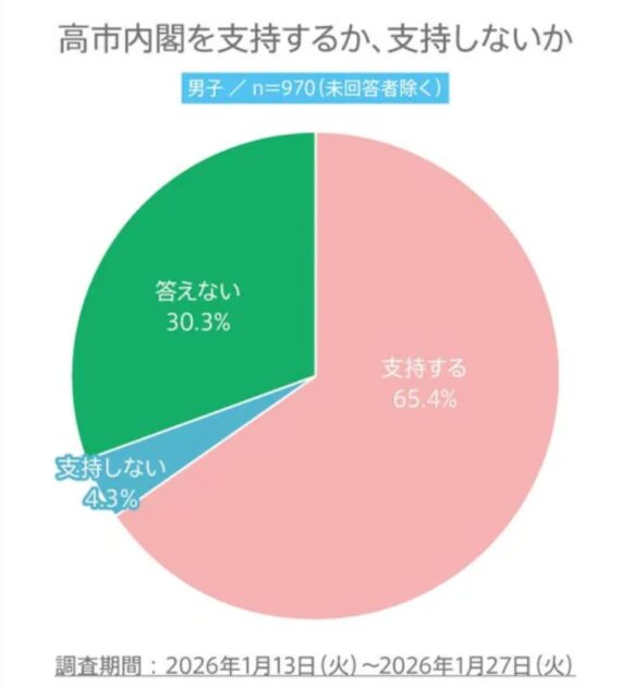 まず、高市内閣を支持するか、しないかは下記の通り。