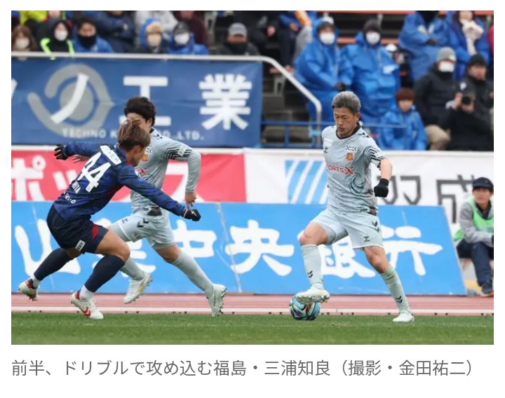 J3福島の元日本代表FWカズこと三浦知良(58)が先発出場。前半20分までプレーし、途中交代となった。