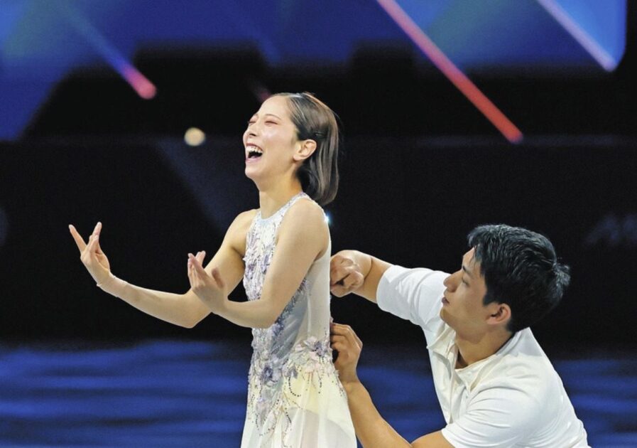 メダリストらによるエキシビションが行われ、ペア金メダリストの三浦璃来(24)、木原龍一(33)組=木下グループ=が華麗な舞を披露した。
