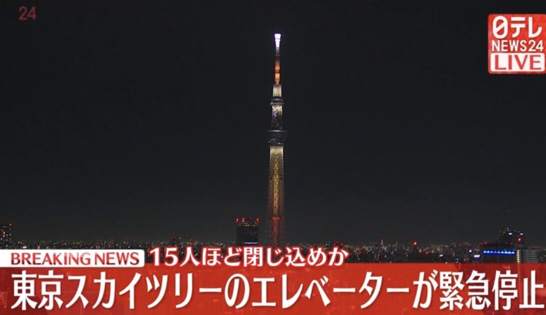 22日午後8時すぎ、東京・墨田区にある東京スカイツリーのエレベーターが緊急停止するトラブルがあり、乗っていた15人ほどが閉じ込められているとみられるということです。
