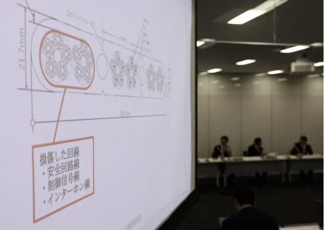 東武タワー社によると、ヒューズの溶断はエレベーターと制御盤をつなぐケーブルの破損が要因。ケーブルの破損は、エレベーターをレールに沿って移動させる「ローラーガイド」と呼ばれる案内装置の回転部に巻き込まれたことで発生したと結論づけた。