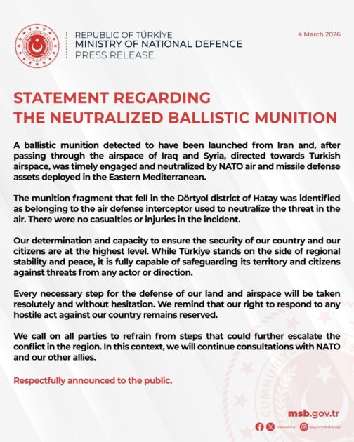 【イスタンブール共同】トルコ国防省は4日、イランが弾道ミサイルを発射しトルコ領空に飛来したが、東地中海に配備されていた北大西洋条約機構(NATO)の部隊に撃墜されたと発表した。