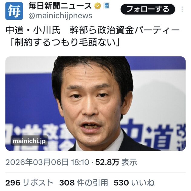 引用元: ・中革連・小川氏、幹部ら政治資金パーティー「制約するつもり毛頭ない」 [662593167]