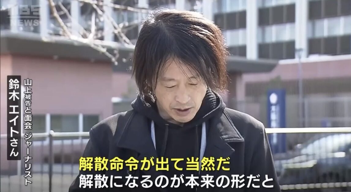 「旧統一教会への解散命令は当然」などの旨 山上徹也被告が鈴木エイト氏と面会し「本来の形」など心境語る 旧統一教会の解散命令後に初