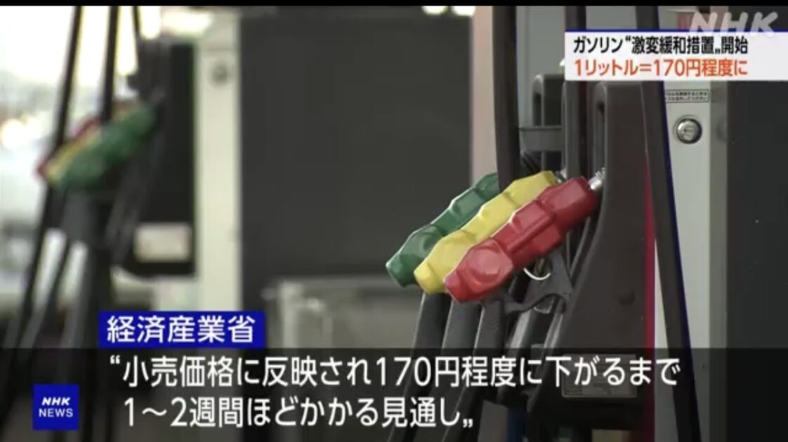 イラン情勢の緊迫化を受け、ガソリンの急激な値上がりを抑える、政府の激変緩和措置が、19日から始まりました。1リットル当たり170円程度に抑えるための補助金が支給され、1週間から2週間ほどで小売価格に反映される見込みです。