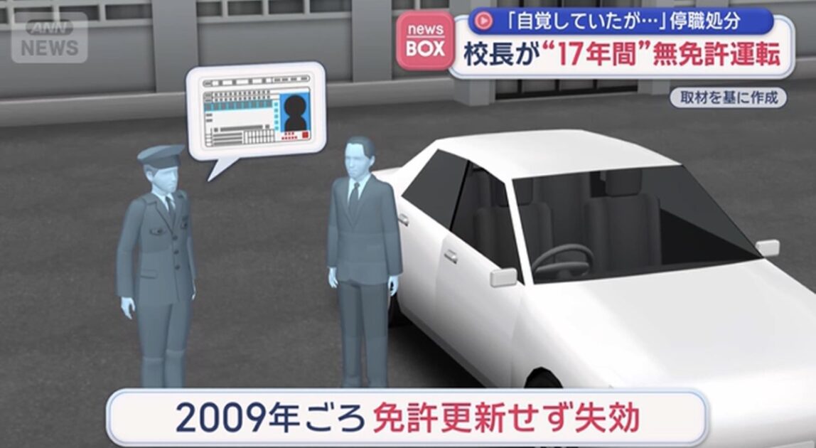 17年にもわたって無免許で運転していたのは、石川県の公立中学校の50代男性校長です。